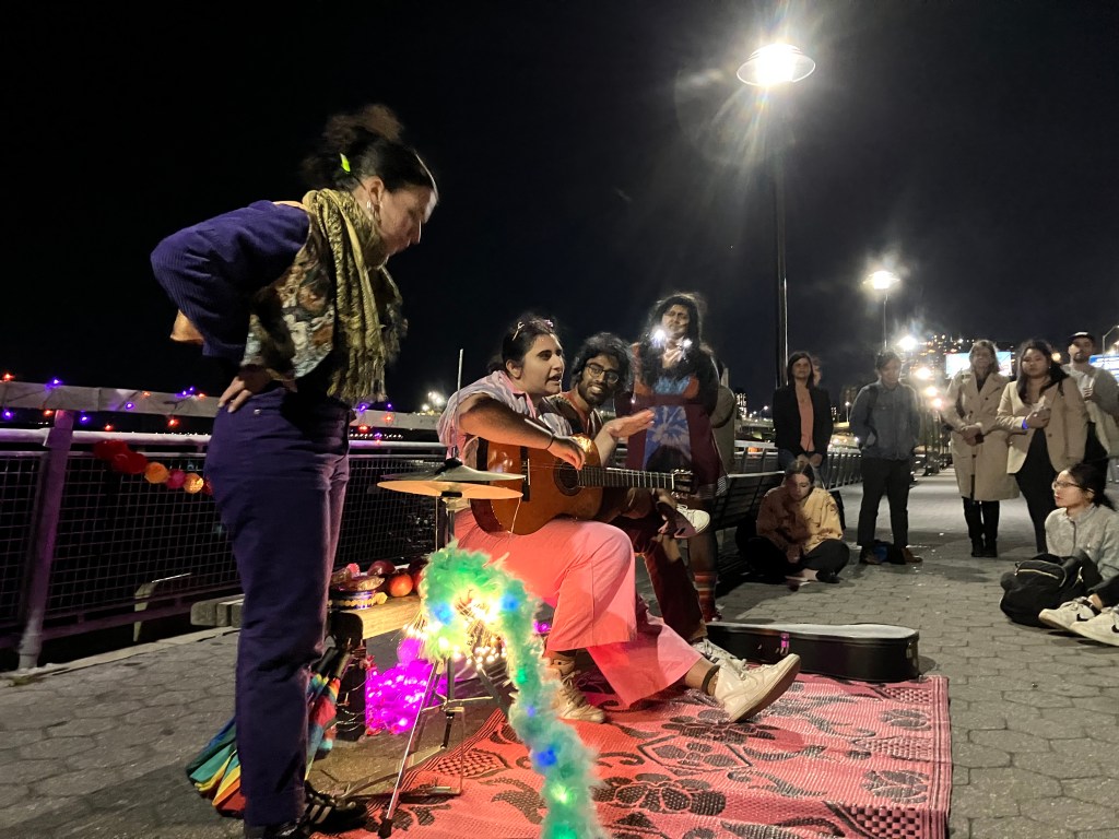 About 50 people braved a chilly wind while the performers aimed to build a world exploring New Yorkers’ emotional relationship to rain—and the ways that neighbors can come together to meet disasters cooperatively.